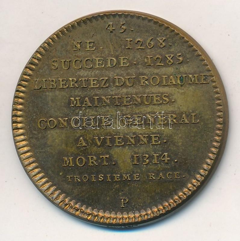 Franciaország ~1900. "IV. Fülöp" peremén jelzett Br emlékérem "Francia Királyok sorozat" (13,95g/32mm) T:2
