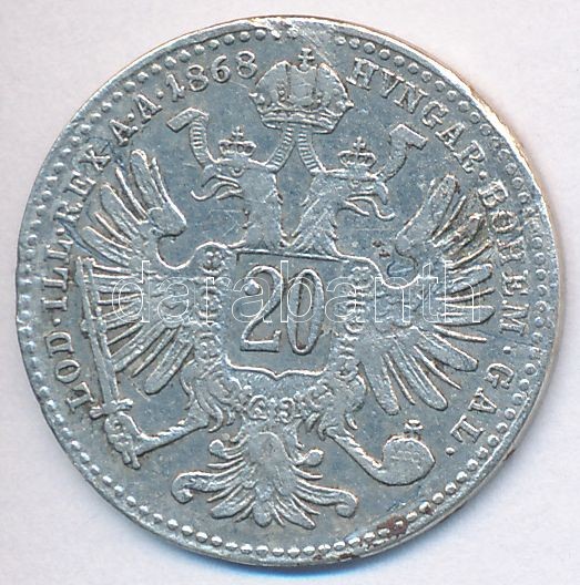 Austria 18... https://www.darabanth.com/de/270-Fernauktion/270.0/Numismatik/Weltweit-Munzen~200013/Ausztria-1868-20kr-Ag-Ferenc-Jozsef-T2-karc--Austria-1868-20-Kreuzer-Ag-Franz-Joseph-CVF-s~II1365397