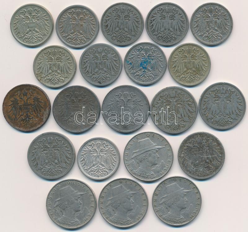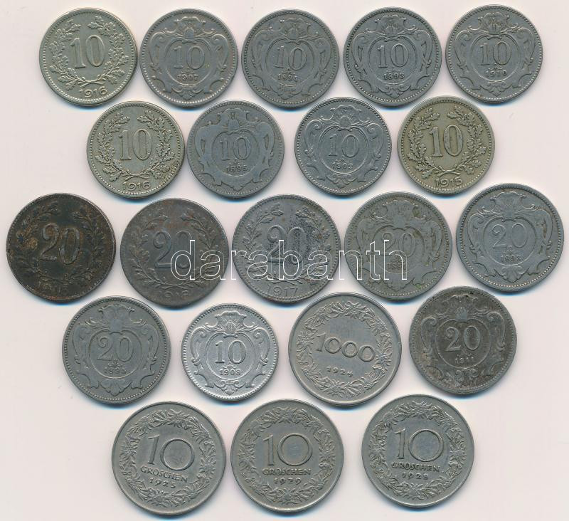 Ausztria 1893-1918. 10h Ni/Cu-Ni-Zn (10x) + 20h Ni/Fe (7xklf) + 1924. 1000K Cu-Ni + 1925-1929. 10gr Cu-Ni T:2,2-,3 Austria 1893-1918. 10 Heller Ni/Cu-Ni-Zn (10x) + 20 Heller Ni/Fe (7xdiff) + 1924. 1000 Kronen Cu-Ni + 1925-1929. 10 Groschen Cu-Ni C:XF,VF,F