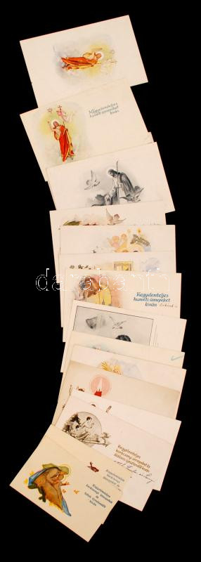 Beschreibung: cca 1930-1940 Márton Lajos és K.Sávely Dezső grafikáival díszített üdvözlőkártyák, 16 db