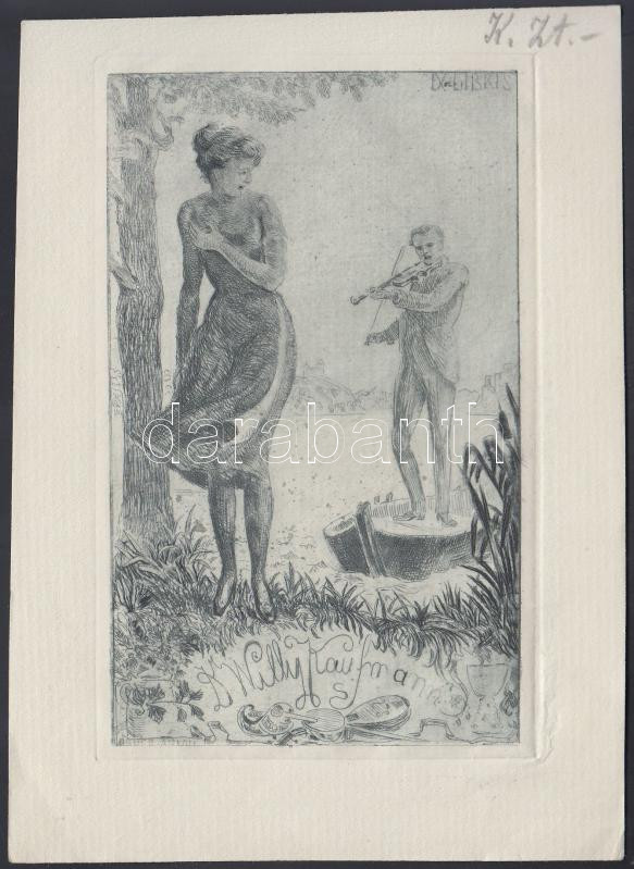 Beschreibung: Carl Pauer-Arlau (1880-1932): Ex libris Willy Kaufmann. Rézkarc, papír, jelzett a karcon, 11×10 cm