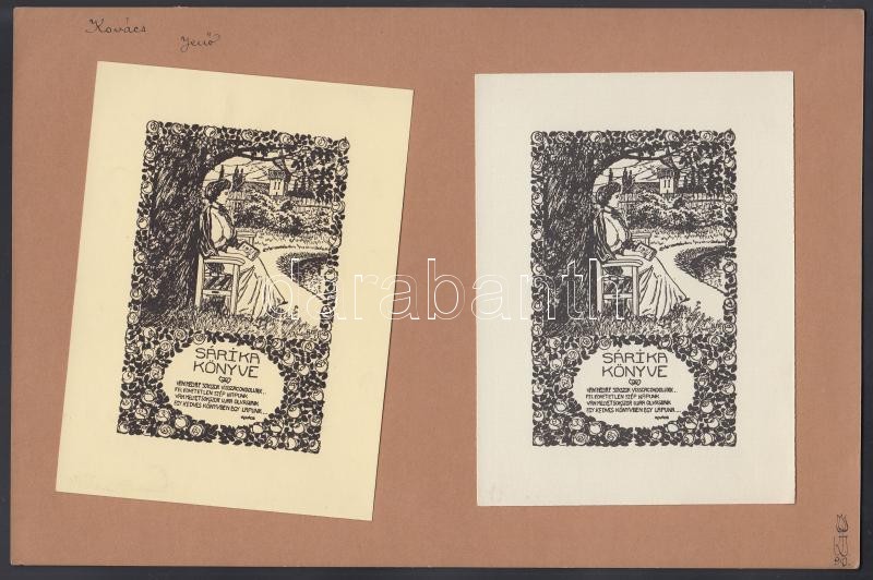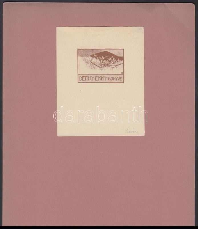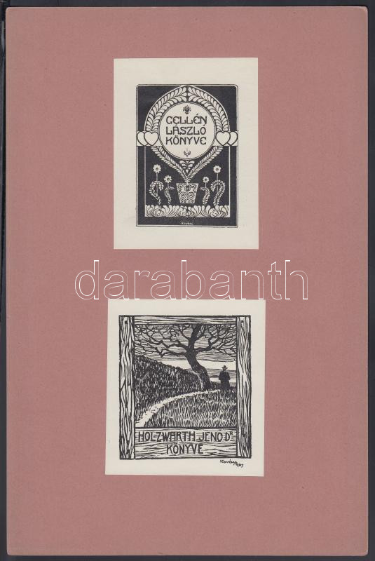 Monori Kovács Jenő (?-?): Vegyes ex libris tétel, klisék és metszetek vegyesen, egy rész dúcon jelzett, kartonra ragasztva, 6db, különböző méretben, 3x4cm és 11x8cm