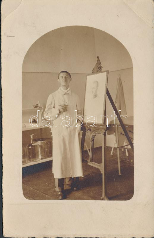 1915 Festőművész műtermében, fotólap, hátoldalon feliratozva, felületé... https://www.darabanth.com/de/271-Fernauktion/271.0/Andere-Sammelgebiete/Foto~20/1915-Festomuvesz-mutermeben-fotolap-hatoldalon-feliratozva-feluleten-toresnyomokkal-1~II1374732