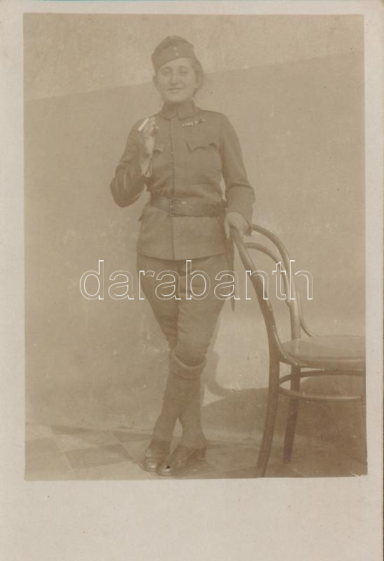 1918 Cigarettázó hölgy katonaruhában, Léván (Felvidék), fotólap, 13x9c... https://www.darabanth.com/de/271-Fernauktion/271.0/Andere-Sammelgebiete/Foto~20/1918-Cigarettazo-holgy-katonaruhaban-Levan-Felvidek-fotolap-13x9cm~II1372979