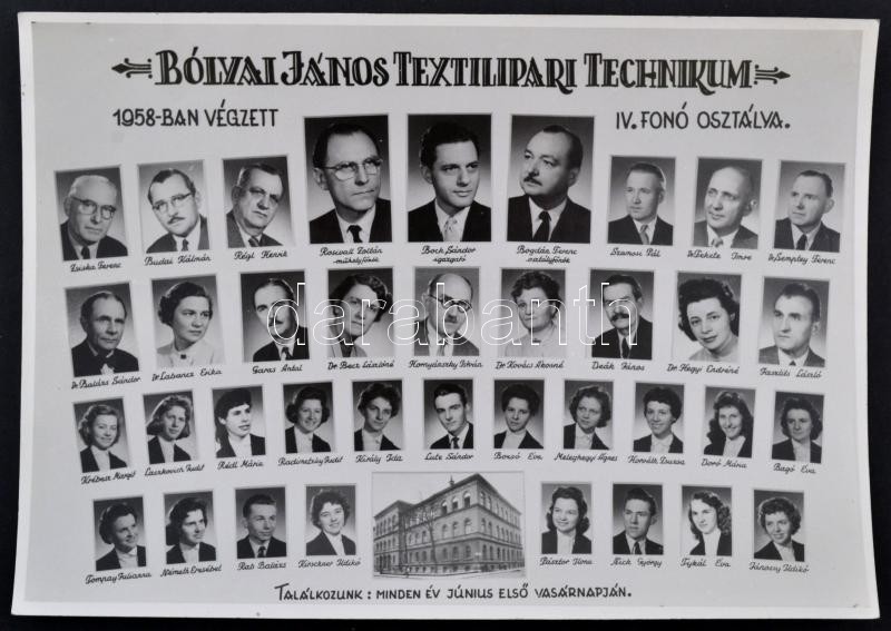 1952-62 Tablóképek textilipari középiskolából, 8db, cca 17x24cm https://www.darabanth.com/de/271-Fernauktion/271.0/Andere-Sammelgebiete/Foto~20/1952-62-Tablokepek-textilipari-kozepiskolabol-8db-cca-17x24cm~II1375836
