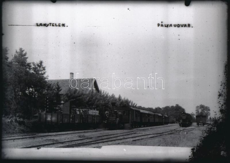 Beschreibung: cca 1936 Lakitelek pályaudvar, Lőcsey Árpád kecskeméti vándorfényképész hagyatékában őrzött üveglemez negatív modern nagyítása, 13x18 cm