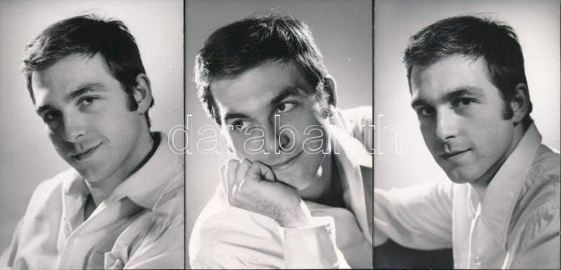 Beschreibung: cca 1969 Huszti Péter színész 3 db portré felvétele, negatív + kontakt másolat, 9x6 cm