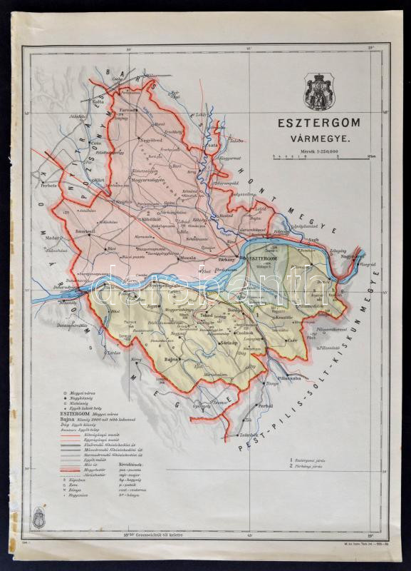 1941 Esztergom vármegye térképe, 1:250000, Magyar Királyi Honvéd Térké... https://www.darabanth.com/de/271-Fernauktion/271.0/Andere-Sammelgebiete/Landkarte~29/1941-Esztergom-varmegye-terkepe-1250000-Magyar-Kiralyi-Honved-Terkepeszeti-Intezet-34C397~II1369451