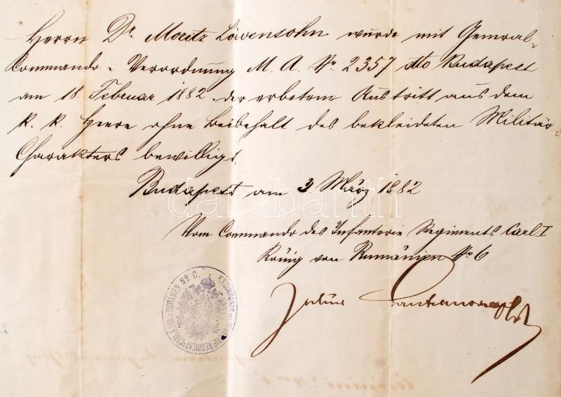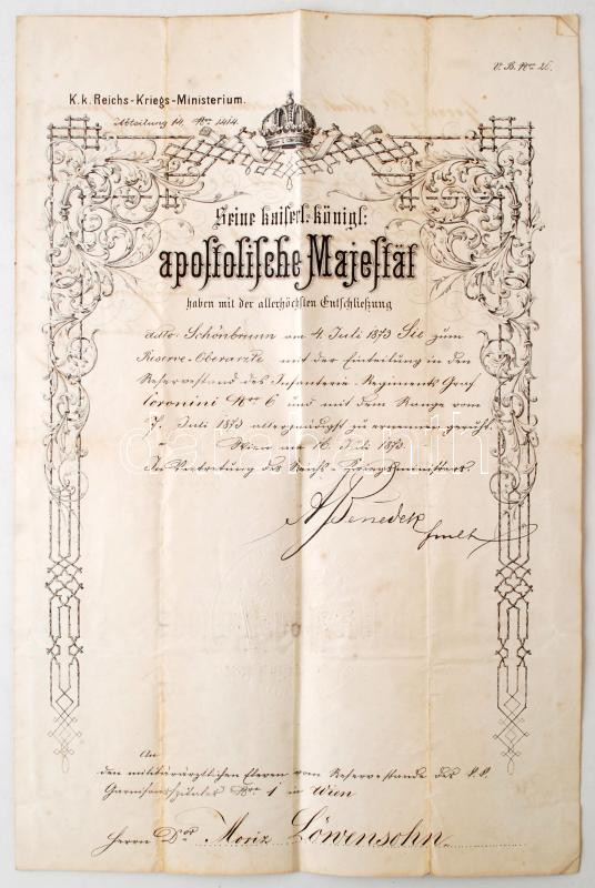 1873 Katonai tartalékos főorvosi kinevezés, pp.2, kissé viseltes állap... https://www.darabanth.com/de/271-Fernauktion/271.0/Andere-Sammelgebiete/Militaria~28/1873-Katonai-tartalekos-foorvosi-kinevezes-pp2-kisse-viseltes-allapotban-42x28cm~II1375048