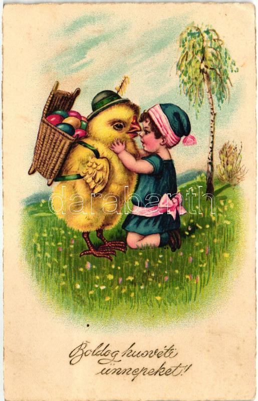 Easter, chicken, child, HWB SER 3169. litho (EK) https://www.darabanth.com/de/271-Fernauktion/271.0/Ansichtskarten/GruC39Fkarten-Feste~200094/Easter-chicken-child-HWB-SER-3169-litho-EK~II1352204