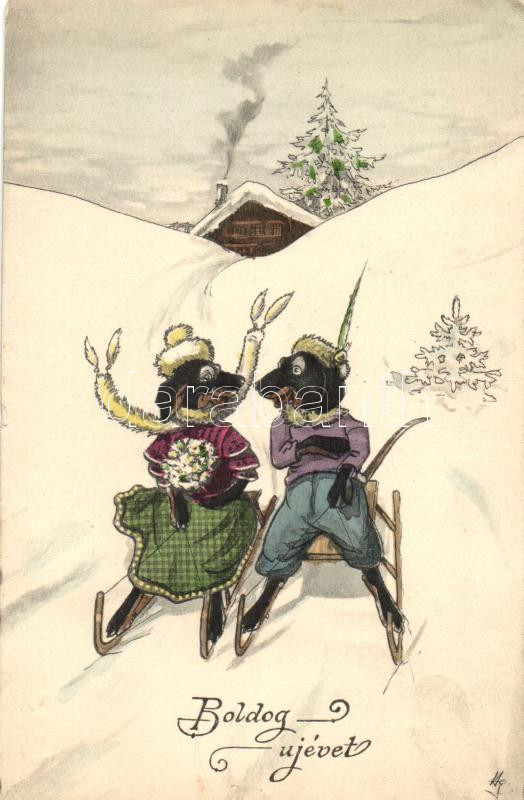 New Year, sledding dogs, H.H.i.W., Nr. 660., artist signed (EK) https://www.darabanth.com/de/271-Fernauktion/271.0/Ansichtskarten/GruC39Fkarten-Feste~200094/New-Year-sledding-dogs-HHiW-Nr-660-artist-signed-EK~II1368784