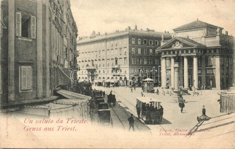 1899 Trieste, Piazza della Borsa, tram (fa) https://www.darabanth.com/de/271-Fernauktion/271.0/Ansichtskarten/Italien~200048/1899-Trieste-Piazza-della-Borsa-tram-fa~II1371597