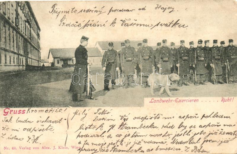 Landwehr-Exercieren... Ruht! / K.u.K. military exercise, dog (wet dama... https://www.darabanth.com/de/271-Fernauktion/271.0/Ansichtskarten/Militaria~200059/Landwehr-Exercieren-Ruht-KuK-military-exercise-dog-wet-damage~II1378481