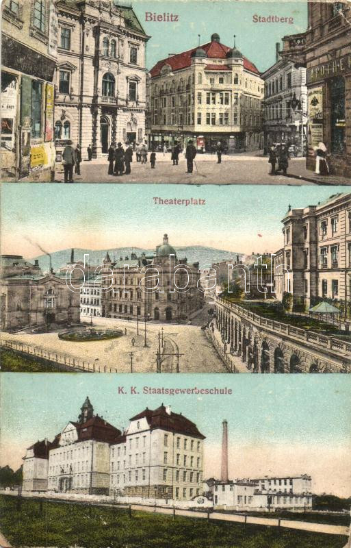 Bielsko-Biala, Bielitz; Stadtberg, Theaterplatz, K.k. Staatsgewerbesch... https://www.darabanth.com/de/271-Fernauktion/271.0/Ansichtskarten/Polen~200037/Bielsko-Biala-Bielitz-Stadtberg-Theaterplatz-Kk-Staatsgewerbeschule-street-State-Trade-Scho~II1375639