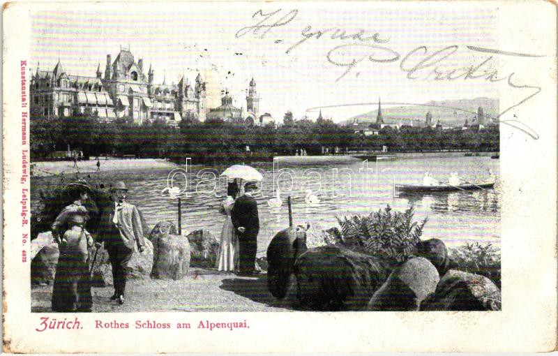 Zürich, Rotes Schloss am Alpenquai / castle (Rb) https://www.darabanth.com/de/271-Fernauktion/271.0/Ansichtskarten/Schweiz~200060/Zurich-Rotes-Schloss-am-Alpenquai-castle-Rb~II1353716
