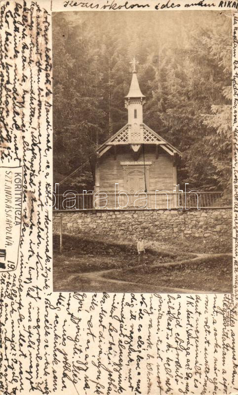 1919 Korytnica, Szent András kápolna / chapel, photo https://www.darabanth.com/de/271-Fernauktion/271.0/Ansichtskarten/Slowakei~200008/1919-Korytnica-Szent-Andras-kapolna-chapel-photo~II1358176