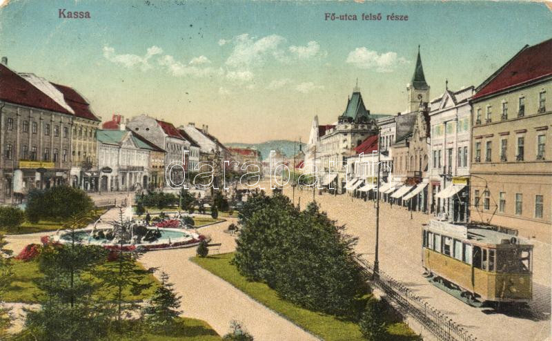 Kassa, Kosice; Fő utca felső része, 1-es villamos / main street, tram ... https://www.darabanth.com/de/271-Fernauktion/271.0/Ansichtskarten/Slowakei~200008/Kassa-Kosice-Fo-utca-felso-resze-1-es-villamos-main-street-tram-EK~II1369689