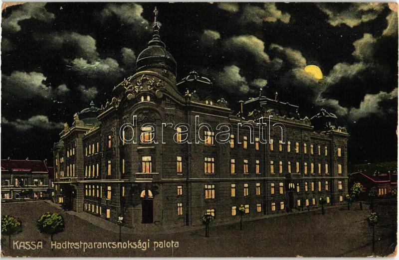 Kassa, Kosice; Hadtestparancsnokság, este / military office building, ... https://www.darabanth.com/de/271-Fernauktion/271.0/Ansichtskarten/Slowakei~200008/Kassa-Kosice-Hadtestparancsnoksag-este-military-office-building-night-kis-szakadas-small-~II1372028
