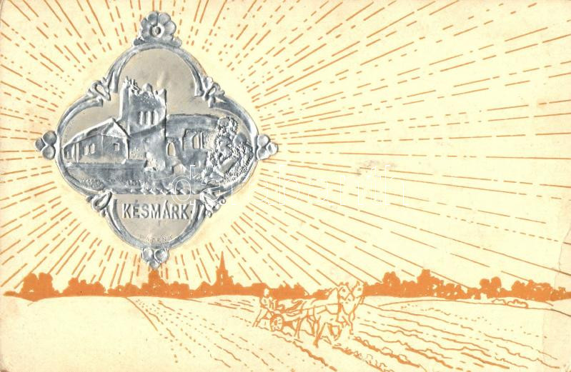 Beschreibung: Késmárk, Kezmarok; fémplakettes képeslap, kiadja Szeiler / silver Emb. (fa)