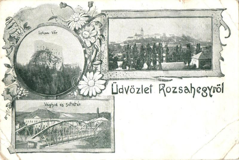 Rózsahegy, Ruzomberok; Vág híd és sétatér, Likava vár / bridge, promen... https://www.darabanth.com/de/271-Fernauktion/271.0/Ansichtskarten/Slowakei~200008/Rozsahegy-Ruzomberok-Vag-hid-es-setater-Likava-var-bridge-promenade-castle-floral-EB~II1378876
