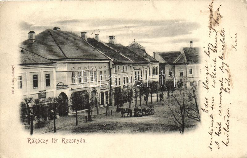Beschreibung: Rozsnyó, Roznava; Rákóczi tér, Falvi Jenő üzlete; kiadja Falvi Jenő / square, shop (EK)