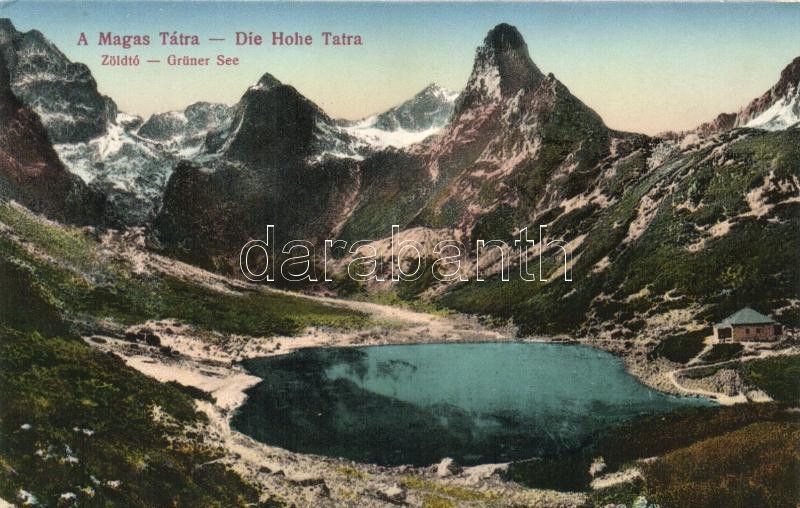 Tátra, Magas Tátra, Vysoké Tatry; Zöldtó, kiadja Kuszmann Gyula https://www.darabanth.com/de/271-Fernauktion/271.0/Ansichtskarten/Slowakei~200008/Tatra-Magas-Tatra-Vysoke-Tatry-Zoldto-kiadja-Kuszmann-Gyula~II1368632
