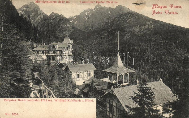 Beschreibung: Tátra, Tarpatakfüredi szálloda, Lomnici csúcs / hotel, mountain peak (EK)