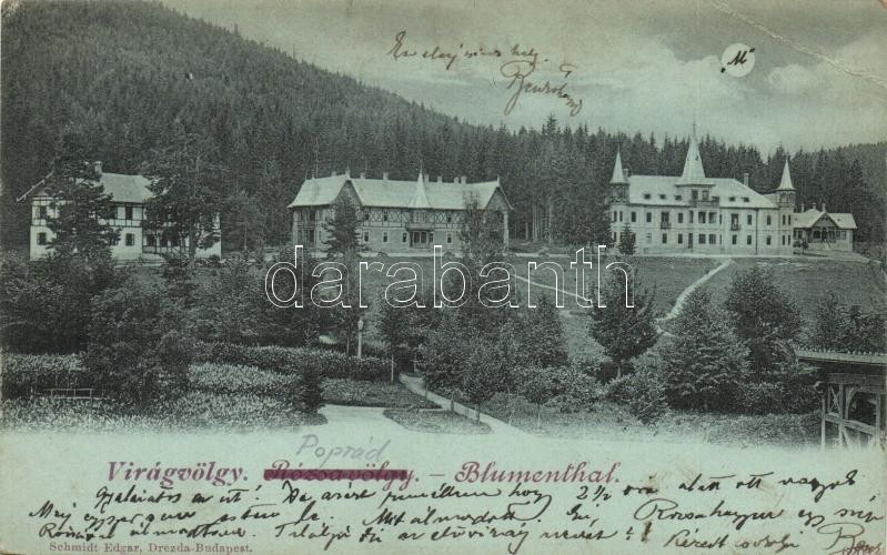 Tátra, Virágvölgy Poprád mellett, Feitzinger Ede 90. / Blumenthal (EB) https://www.darabanth.com/de/271-Fernauktion/271.0/Ansichtskarten/Slowakei~200008/Tatra-Viragvolgy-Poprad-mellett-Feitzinger-Ede-90-Blumenthal-EB~II1374985