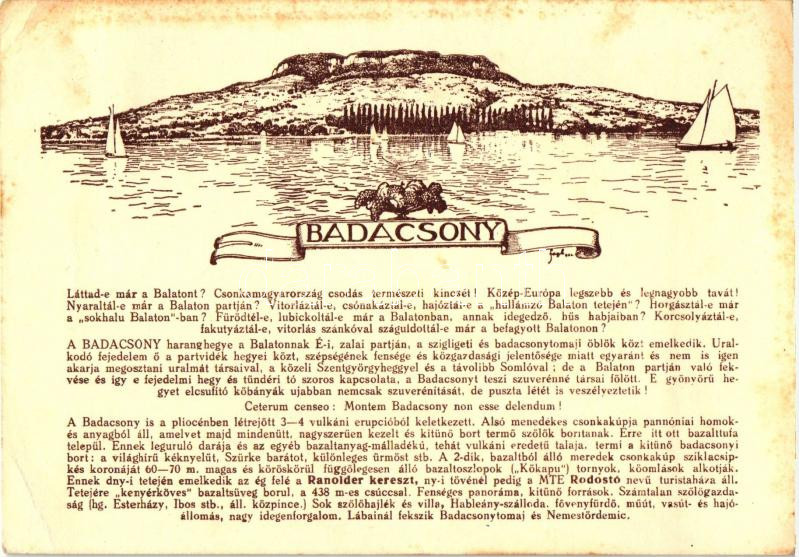 Beschreibung: Badacsony, Dr. Dornyay Béla Honismertető c. képeslap sorozata No. 23. s: Fayl (EB)