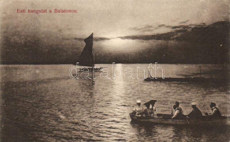Balaton, Vitorlás, csónak, este, kiadja Divald és Monostory https://www.darabanth.com/de/271-Fernauktion/271.0/Ansichtskarten/Ungarn~200006/Balaton-Vitorlas-csonak-este-kiadja-Divald-es-Monostory~II1374434