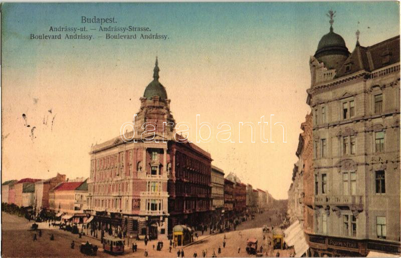 Budapest VI. Andrássy út, villamos, Fiókpénztár https://www.darabanth.com/de/271-Fernauktion/271.0/Ansichtskarten/Ungarn~200006/Budapest-VI-Andrassy-ut-villamos-Fiokpenztar~II1373402