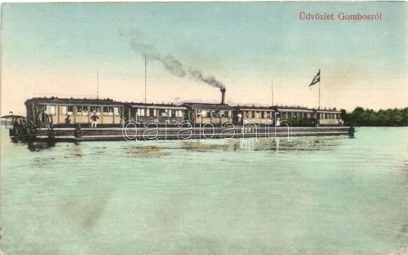 Beschreibung: Gombos, Bogjevo; gőzkomp, kiadja Tippl Józsefné / steam ferry