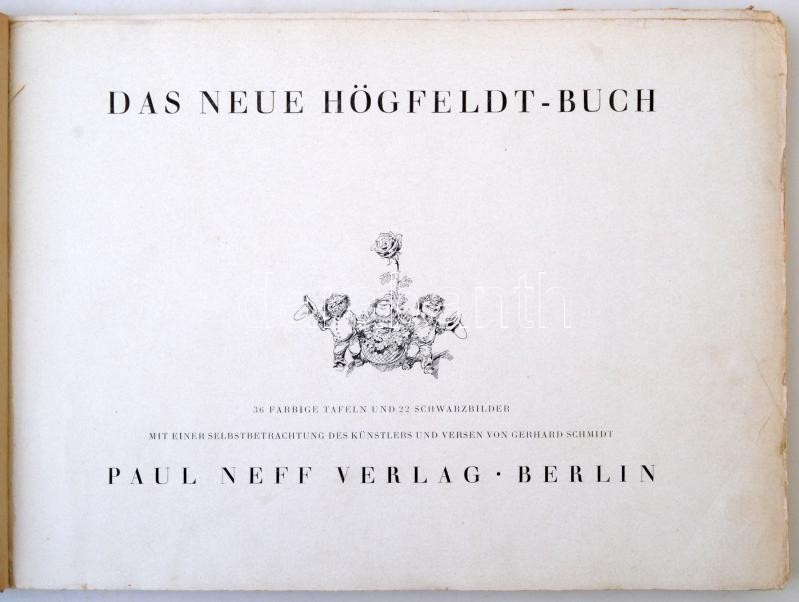 Das neue Högfeldt-Buch. 36 farbige Tafeln und 22 Schwarzbilder. Mit einer Selbstbetrachtung des Künstlers und Versen von Gerhard Schmidt. Berlin, 1942, Paul Neff Verlag. Kiadói félvászon kötés, kopottas állapotban.