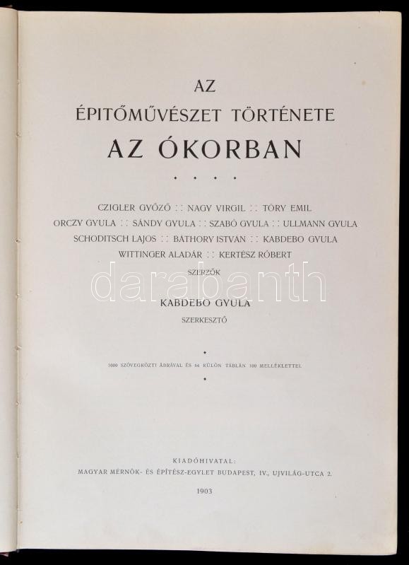Kabdebo Gyula (szerk.): Az Építőművészet Története I. Kötet: Ókor. Budapest, 1903, Magyar Mérnök- És Építész-Egylet, 464 p.