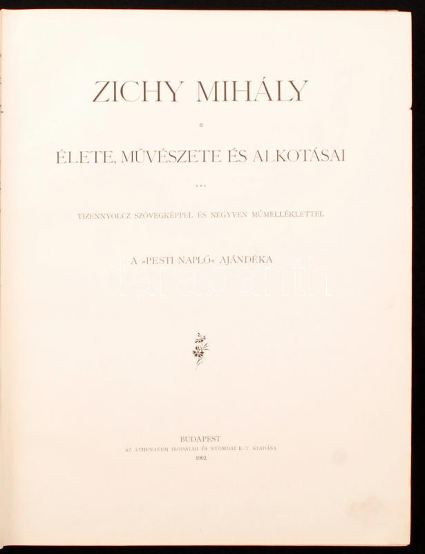 Zichy Mihály élete, művészete és alkotásai. 18 szövegképpel és 40 műmelléklettel. A Pesti Napló ajándéka. Bp, 1902, Athenaeum. 76p. + 39t. Kiadói, festett egészvászon-kötésben, jó állapotban.