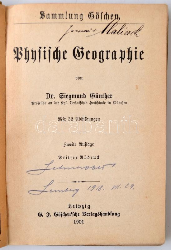 Günther Siegmund: Physische Geographie. Leipzig, 1901. Göschen. Egészv... https://www.darabanth.com/de/271-Fernauktion/271.0/Bucher/Bucher-Bergsteigen-und-Wintersport~33/Gunther-Siegmund-Physische-Geographie-Leipzig-1901-Goschen-Egeszveszon-kotesben-In-full~II1284273