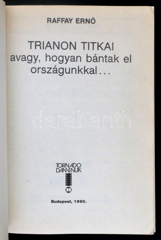 Raffay Ernő: Trianon titkai, avagy hogyan bántak el országunkkal. Buda... https://www.darabanth.com/de/271-Fernauktion/271.0/Bucher/Bucher-Geschichte~35/Raffay-Erno-Trianon-titkai-avagy-hogyan-bantak-el-orszagunkkal-Budapest-1990-Tornado-Danneni~II1372776
