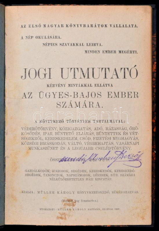 Jogi utmutató kérvény mintákkal ellátva az ügyes-bajos ember számára. ... https://www.darabanth.com/de/271-Fernauktion/271.0/Bucher/Bucher-Justiz~34/Jogi-utmutato-kerveny-mintakkal-ellatva-az-ugyes-bajos-ember-szamara-Bekes-Szarvas-1907-~II1368573