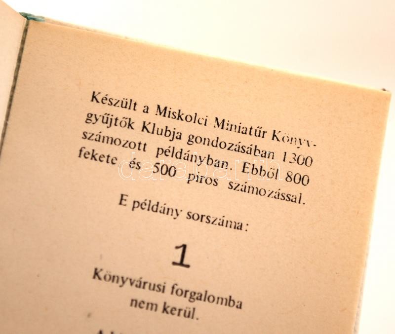 dr. Boross Endre, Kovács Mihály (szerk.): Emabit. Az Első Magyar Általános Biztosító Társaság megalakulásának 125. évfordulója. Miskolc, 1983 , Miskolci Miniatűrkönyv Gyűjtők Könyve. 500 példányban készült, ez az 1. sorszámú! Kiadói egészvászon plakettel. kötésben. 5x4cm