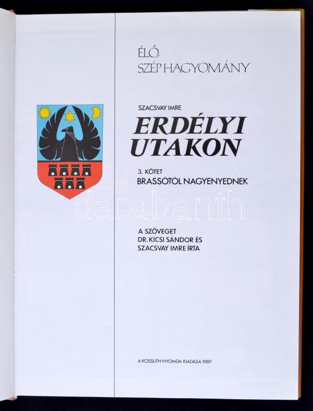 Dr. Kicsi Sándor - Szacsvay Imre: Erdélyi utakon III. Brassótól Nagyenyednek. Budapest , 1989, Officina Nova. Dekoratív album, egészvászon kiadói papírborítóban, 130 p.