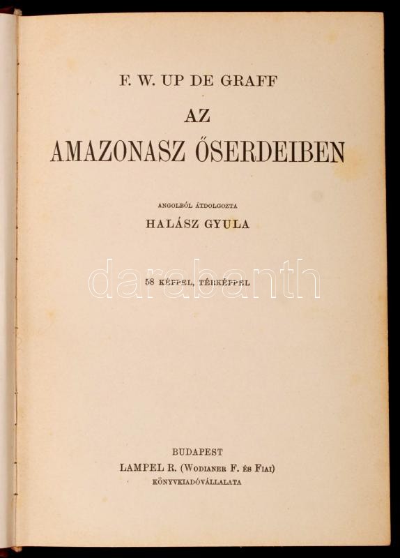 F. W. Up de Graff: Az Amazonasz őserdeiben. A Magyar Földrajzi Társaság Könyvtára. Angolból átdolgozta: Halász Gyula. Budapest, é. n., Lampel R. (Wodianer F. és Fiai) Könyvkiadóvállalata, 164 p. Kissé kopottas, foltos aranyozott kiadói egészvászon sorozatkötésben.