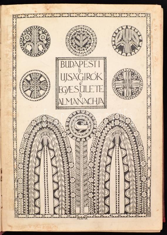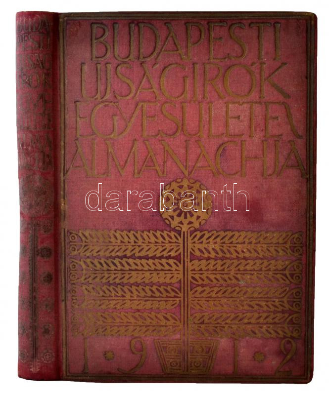 Budapesti Ujságírók Egyesülete Almanachja 1912. Bp. 1912, Nyugat. 368 p. A kötést és az előzéklapokat Kozma Lajos rajzolta. Aranyozott kiadói, szecessziós egészvászon-kötésben. A kötetben többek között Ady Endre, Csáth Géza, Kaffka Margit, Móricz Zsigmond, Karinthy Frigyes, Kosztolányi Dezső és Krúdy Gyula művei találhatók. Kopottas-foltos, nedvességtől kifakult egészvászon-kötésben.