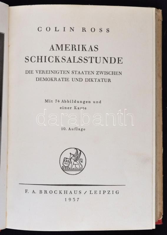 Dr. Colin Ross (1885-1945): Amerikas Schicksalsstunde. Die Vereiningten Staaten Zwischen Demokratie und diktatur. Leipzig, 1937, F. A. Brockhaus, 314 p. 10. kiadás.
