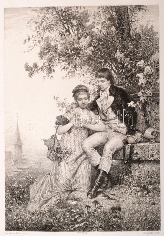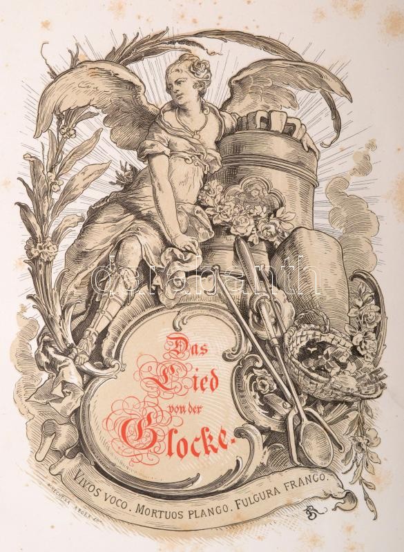 Friedrich von Schiller: Das Lied von der Glocke. Illustriert in 32 Compositionen von Alexander Liezen Mayer. Mit 43 ornamentalen Zeichnungen von Rudolf Seitz. Ausgeführt in 6 Kupferstichen von J. F. Deininger, E. Forberg und Fr. Ludy und in 69 Holzschnitten aus Wilhelm Hecht s xylographischer Anstalt. 26 Compositionen Liezen Mayer s auf Holz gezeichnet von W. Hecht. München, é.n. ,Theodor Ströfer's Kunsverlag, 55 p. Kiadói aranyozott egészbőr kötés. Német nyelvű, metszetekkel illusztrált kiadás. A borító sarkainál és a gerinc széleinél kopottas. / Golden gilded leather-binding, In german language, with engravings, the cover and the spine are worn.