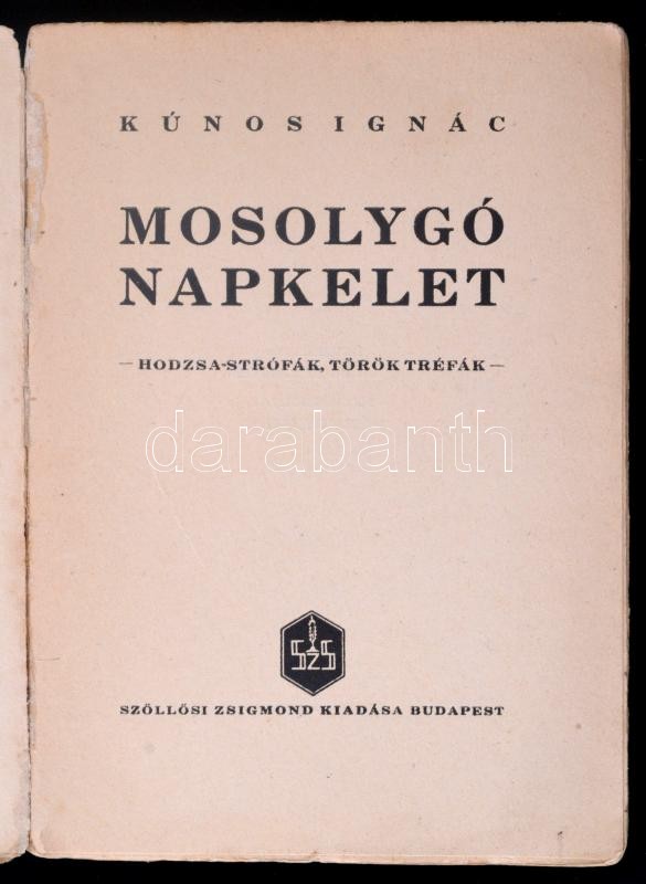 Kúnos Ignác: Mosolygó Napkelet: hodzsa-strófák, török tréfák. Bp., [19... https://www.darabanth.com/de/271-Fernauktion/271.0/Bucher/Bucher-Sonstige-Raritaten~46/Kunos-Ignac-Mosolygo-Napkelet-hodzsa-strofak-torok-trefak-Bp-1930-Szollosi-Kopo~II1375966
