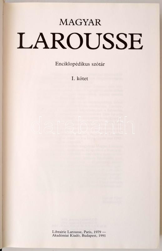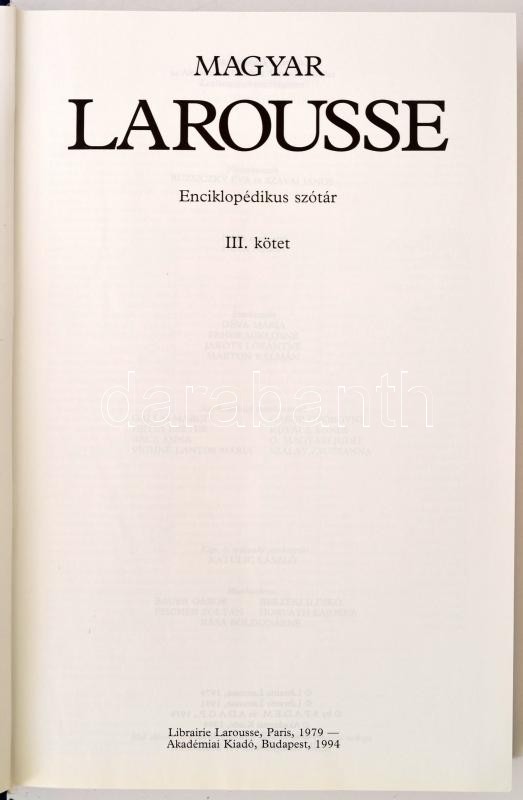 Magyar Larousse enciklopédia. I-III + MEMO. Főszerk.: Bakos Ferenc, Ru... https://www.darabanth.com/de/271-Fernauktion/271.0/Bucher/Bucher-Sonstige-Raritaten~46/Magyar-Larousse-enciklopedia-I-III-plus-MEMO-Foszerk-Bakos-Ferenc-Ruzsiczky-Eva-Szavai-Janos~II1292614