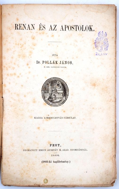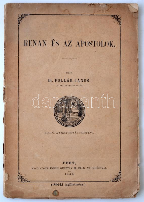 Pollák János: Renan és az apostolok. Pest. 1866. Szent István Társ. 11... https://www.darabanth.com/de/271-Fernauktion/271.0/Bucher/Bucher-Sonstige-Raritaten~46/Pollak-Janos-Renan-es-az-apostolok-Pest-1866-Szent-Istvan-Tars-111-p-Kiadoi-papirkote~II1293363