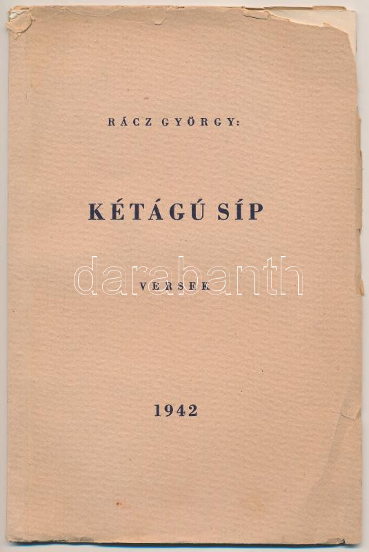 Rácz György. Kétágú síp. Bp., 1942, Globus Ny. 1942. 29 p. Kiadói sérü... https://www.darabanth.com/de/271-Fernauktion/271.0/Bucher/Bucher-Sonstige-Raritaten~46/Racz-Gyorgy-Ketagu-sip-Bp-1942-Globus-Ny-1942-29-p-Kiadoi-serult-papirkotesben-~II1327764