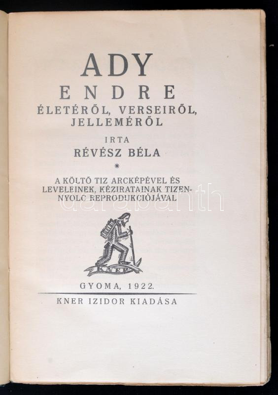 Révész Béla: Ady Endre életéről, verseiről, jelleméről. Gyoma, 1922, K... https://www.darabanth.com/de/271-Fernauktion/271.0/Bucher/Bucher-Sonstige-Raritaten~46/Revesz-Bela-Ady-Endre-eleterol-verseirol-jellemerol-Gyoma-1922-Kner-Izidor-Papirko~II1376019