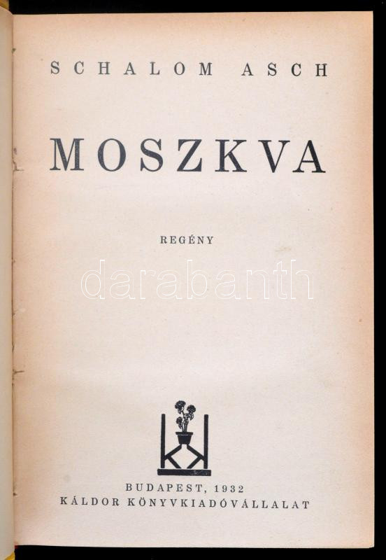 Schalom Asch: Moszkva. Fordította: Gergely Janka. Budapest, 1932, Káld... https://www.darabanth.com/de/271-Fernauktion/271.0/Bucher/Bucher-Sonstige-Raritaten~46/Schalom-Asch-Moszkva-Forditotta-Gergely-Janka-Budapest-1932-Kaldor-Konyvkiadovallalat-36~II1377040